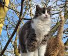 Der hübsche Kater ist ca. Juni 2025 geboren und lebt mit seinen Geschwistern in der Nähe, wo er von uns gefüttert wird.