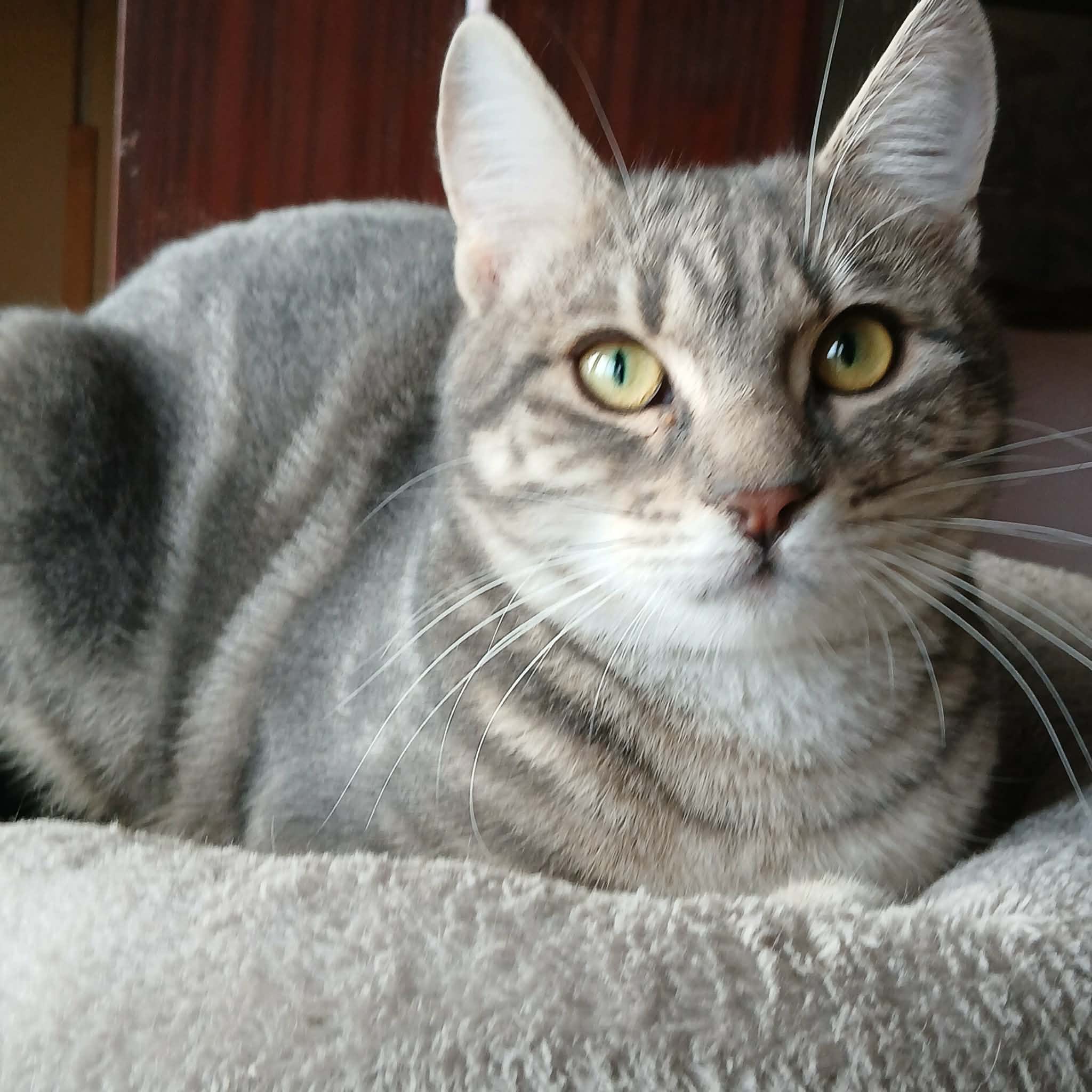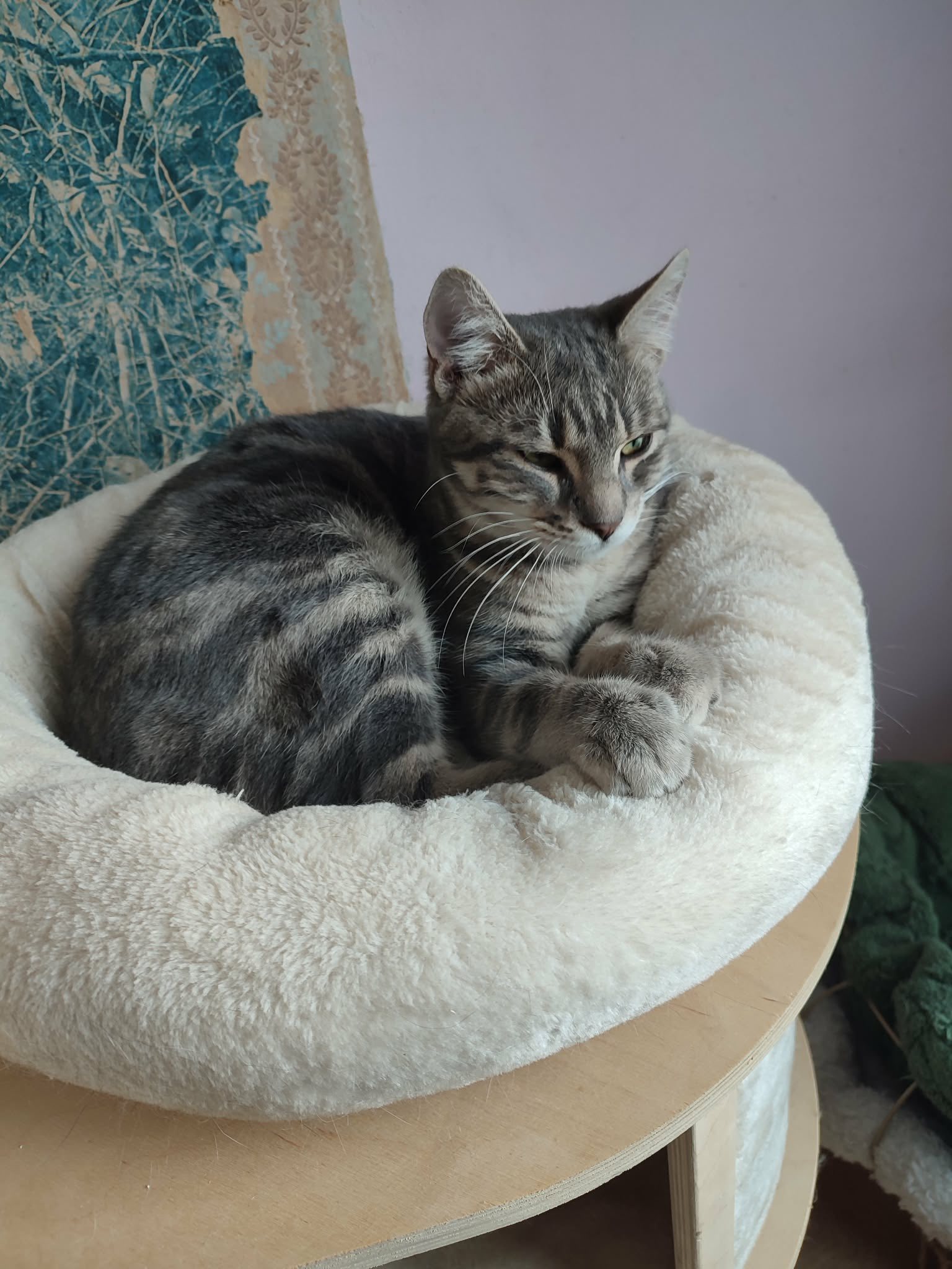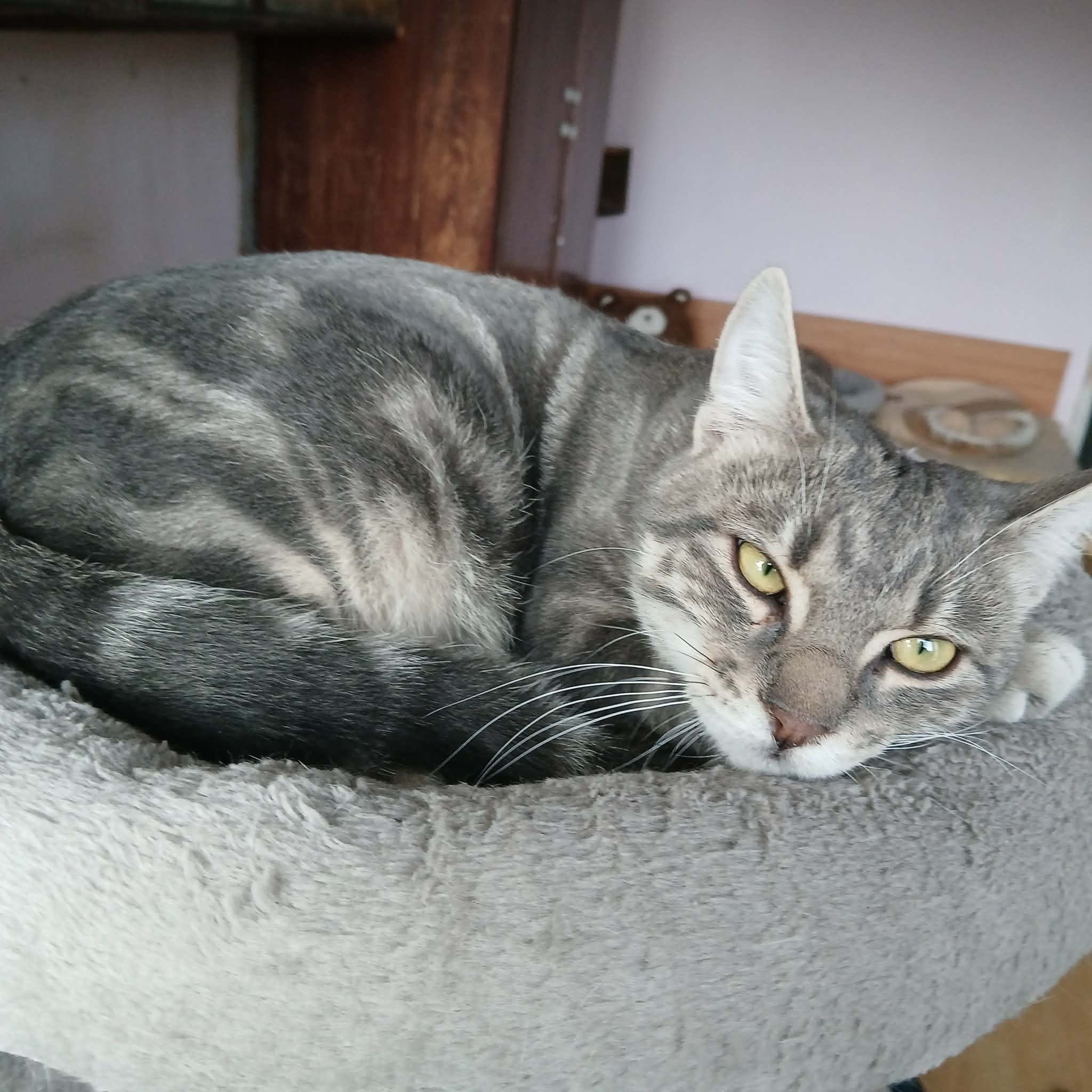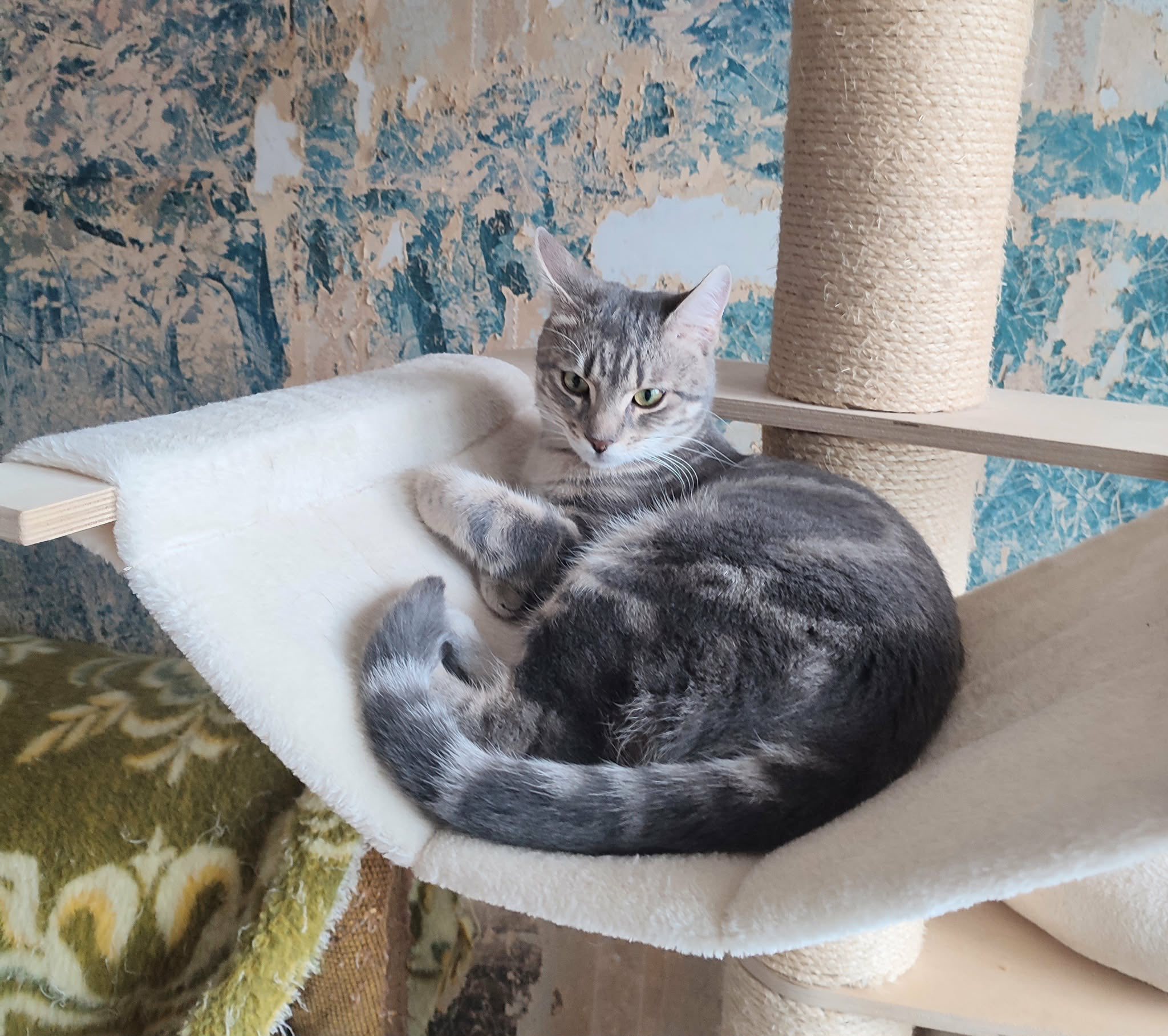 Seine Geschichte: Marinela hat gerade ein kleines rot-weißes Katzenmädchen bei sich aufgenommen, da findet sie in der Nähe ihrer Wohnung diesen Jungen. Sie hat kurz vorher eine tote graue Katze gesehen, vielleicht war es die Mutter dieses Jungen. Leider gibt es in der Nähe eine Handvoll freilaufender Hunde und öfter tödliche Angriffe auf Katzen. Wir sind so froh, dass sie diesen Kleinen in Sicherheit gebracht hat! Der Katerjunge wird auf ca. 11 Monate geschätzt (Stand 04.2026). Er hat den schönen Namen Lucky bekommen.
