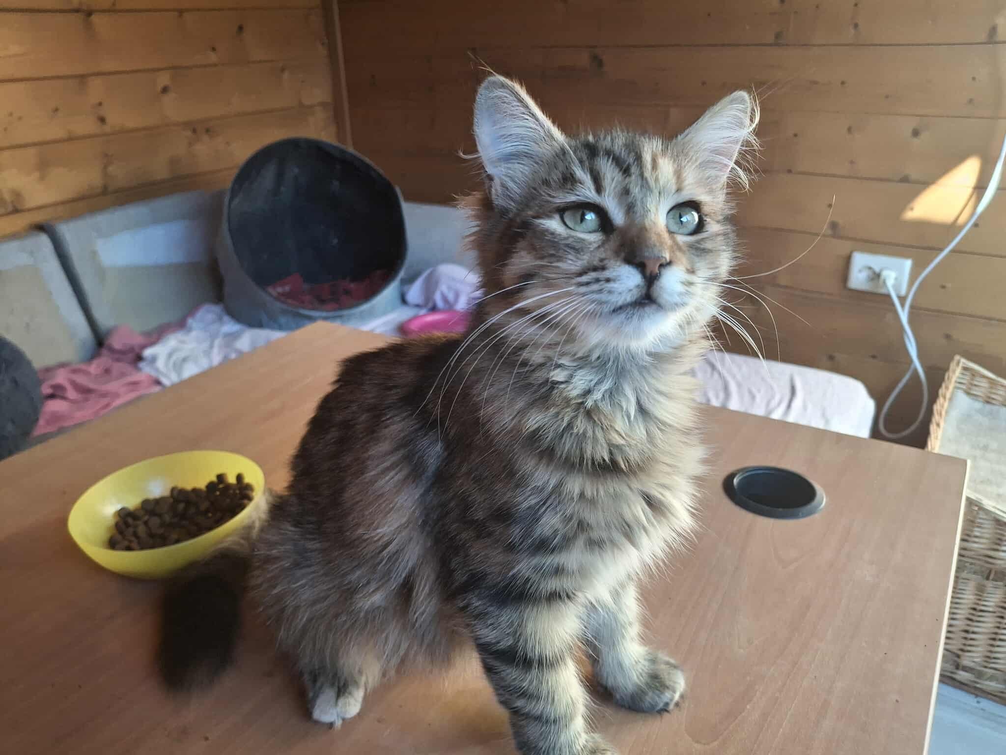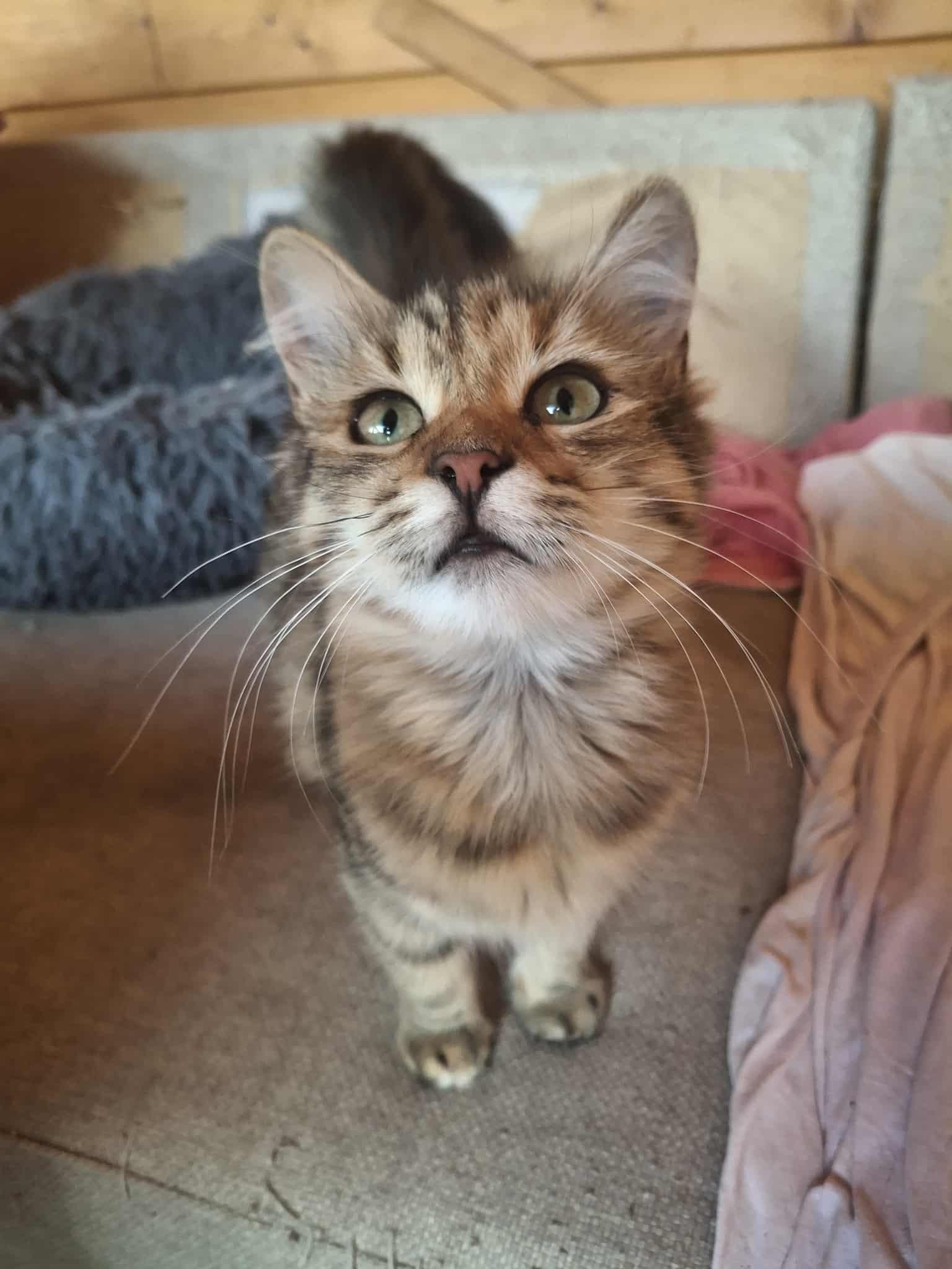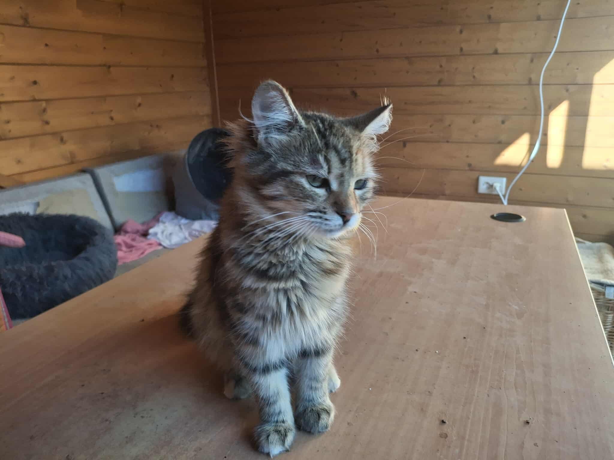 Paris, ein süßes flauschiges Mädchen, wurde zusammen mit Suri kastriert. Der Tierarzt bat Silvi, ob man nicht auch für sie ein Zuhause finden könnte. Das Mädchen wurde in einer Wohnsiedlung gefunden und zum Kastrieren gebracht. Ihre Mami wurde leider überfahren und so nahm Silvi auch Paris zu sich.