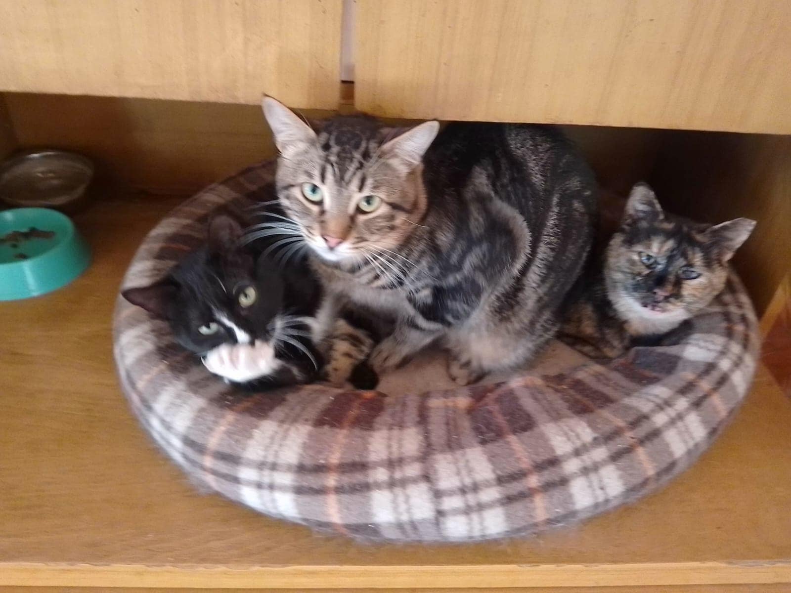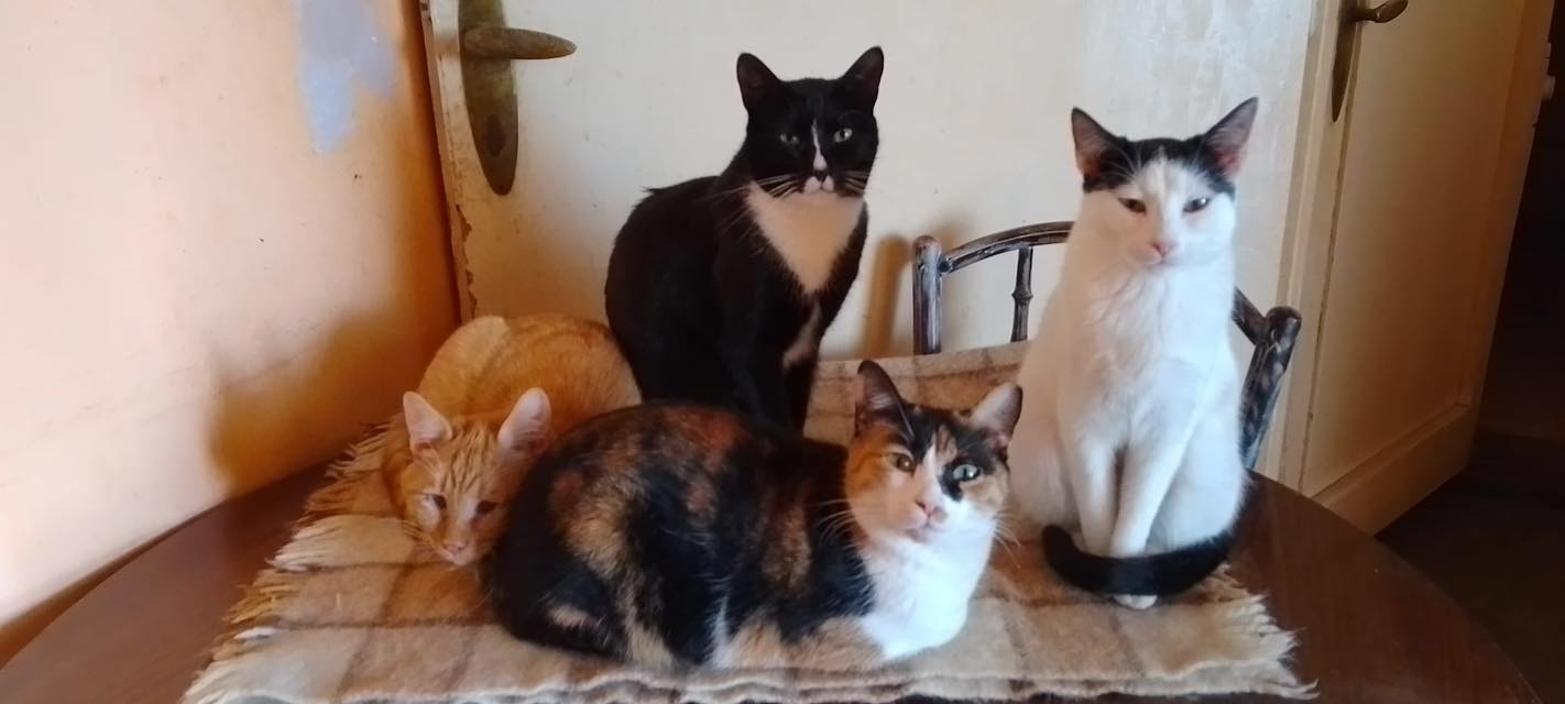 Tobi mit seinen Freunden Tobi, der schwarz-weiße Kater, ist sehr sozial mit Artgenossen. Er wird im Sommer 2 Jahre, gefunden mit wenigen Wochen und von Veselina aufgepäppelt. Er ist zu einem prachtvollen Kater mit tollem Charakter herangewachsen. Leider noch keine Anfragen für ihn… Wenn im neuen Zuhause noch kein Spiel- und Kuschelpartner auf ihn wartet, bringt er gerne einen seiner Freunde mit.